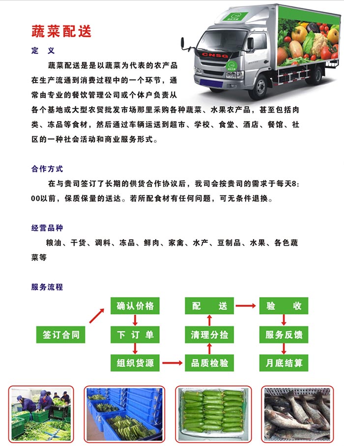 中膳餐飲管理公司長期為學(xué)校、工廠、醫(yī)院、機(jī)關(guān)食堂等提供蔬菜、農(nóng)副食品配送服務(wù),我們保證以下幾點: